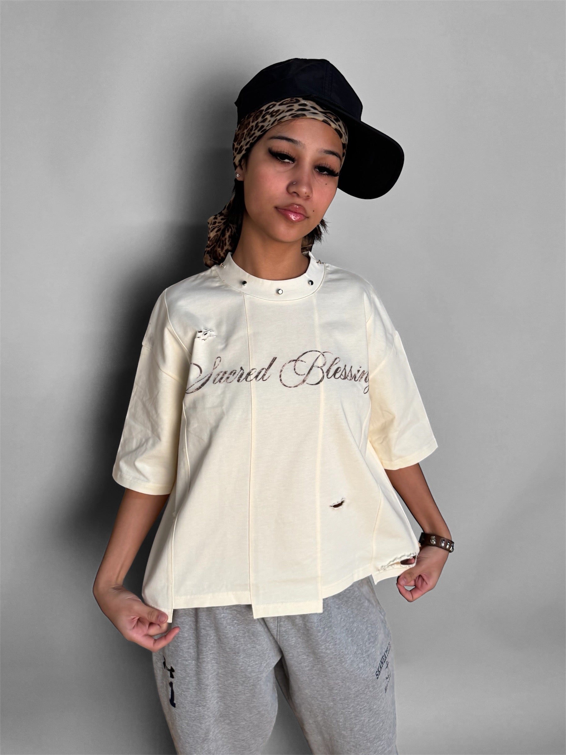 BLESSINGS UNEVEN HEM T-SHIRT